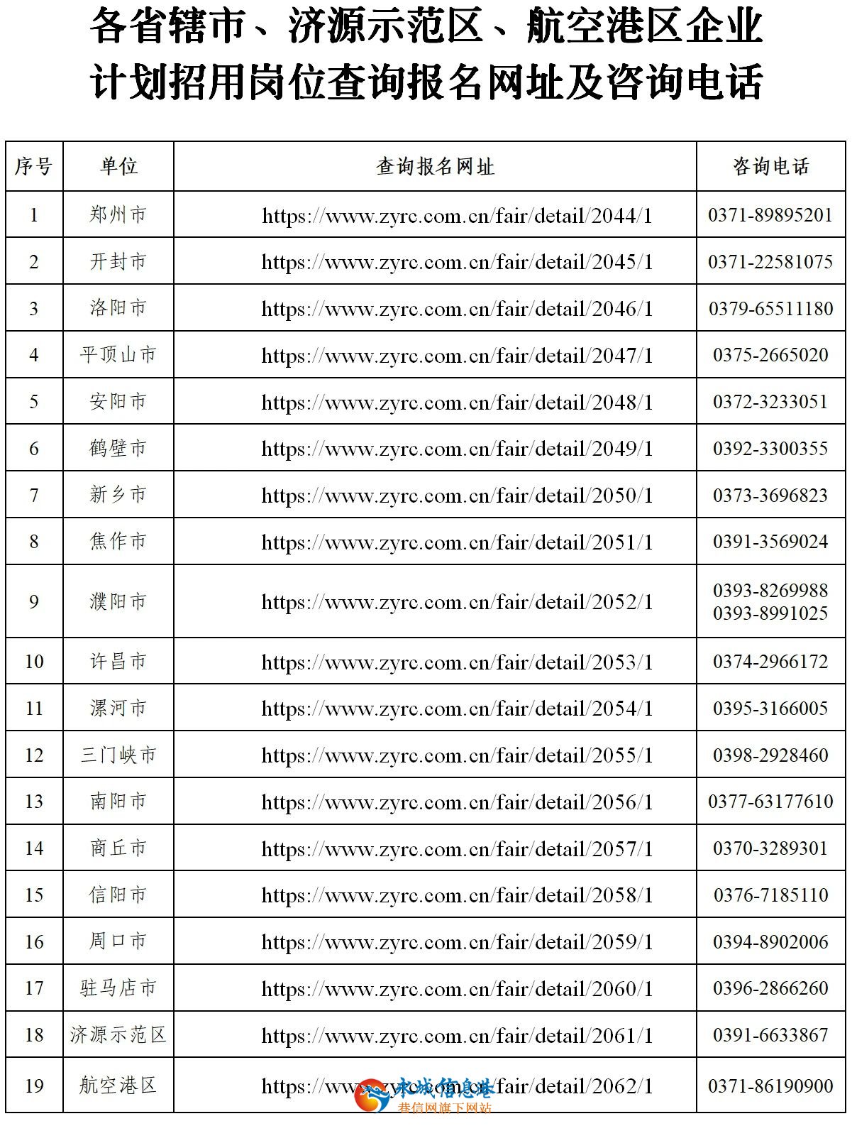 2. 各省轄市、濟(jì)源示范區(qū)、航空港區(qū)企業(yè)招用崗位查詢報(bào)名網(wǎng)址及咨詢電話